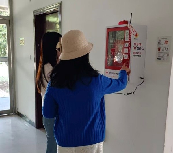 3月26日,河南省红十字会相关负责人在我校完成两台悬挂式AED设备的捐赠交付。此次捐赠的悬挂式AED设备具有安装便捷、取用方便的特点,配有语音与图示指导,可帮助非专业人员快速施救,为心脏骤停患者抢抓“黄金四分钟”救治时间,有效提升校园应急救护能力。