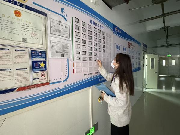 检查组深入餐厅信息公示区、后厨操作间、食材储存区等关键点位,围绕从业人员健康证持证与公示、食材规范储存、设备安全运行、操作流程合规、环境卫生整洁等重点内容,进行逐项细致核查。
