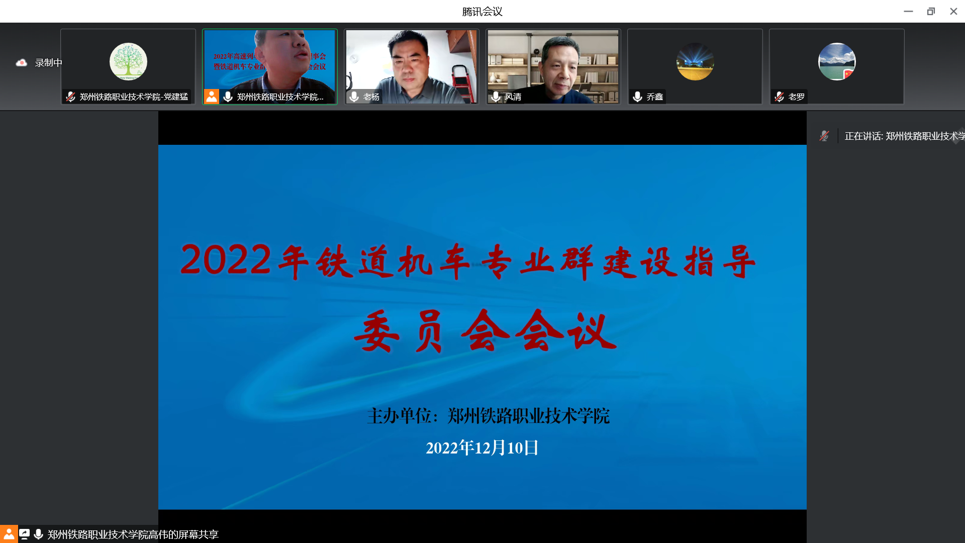 2022年12月10日,我院高速列车产业学院铁道机车专业群建设指导委员会会议顺利召开。机车车辆学院党总支书记张中央、院长高伟、副院长张天彤出席会议,理事单位代表及机车车辆学院相关教师参加会议。