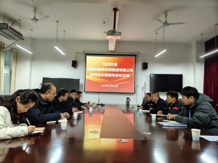 2026年3月12日,郑州动车段副段长孙汉军、职教科科长于东辉、职教科专职单征、技术科副科长杨胤、技术科专职李晓黔一行,专程前往郑州铁路职业技术学院机车车辆学院开展参观学习与课程资源录制专题研讨。机车车辆学院党总支书记可心萌、院长高伟出席交流活动并陪同座谈。