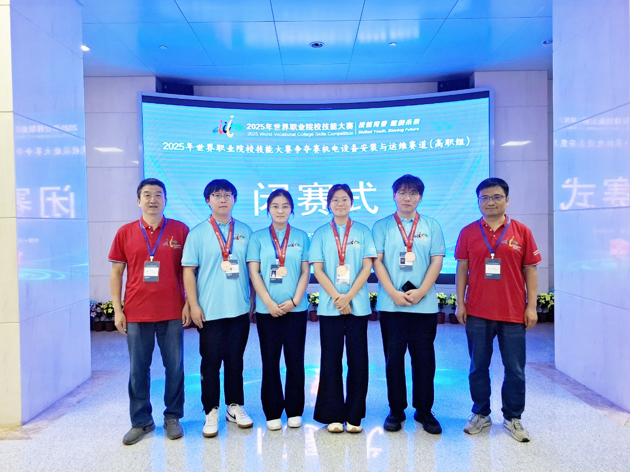 9月16日至22日,2025年世界职业院校技能大赛总决赛“机电设备安装与运维”赛道争夺赛在天津梅江会展中心举办,来自全国的90支参赛队、300余名参赛选手参与赛项角逐。由我校机电工程学院智能装备23A1班的高雪丽、任静怡、李帛峪、李宜祥四位同学组成的参赛队,凭借稳定的发挥和创新的解决方案,在王文超、张勇两位老师的指导下,最终荣获铜奖。