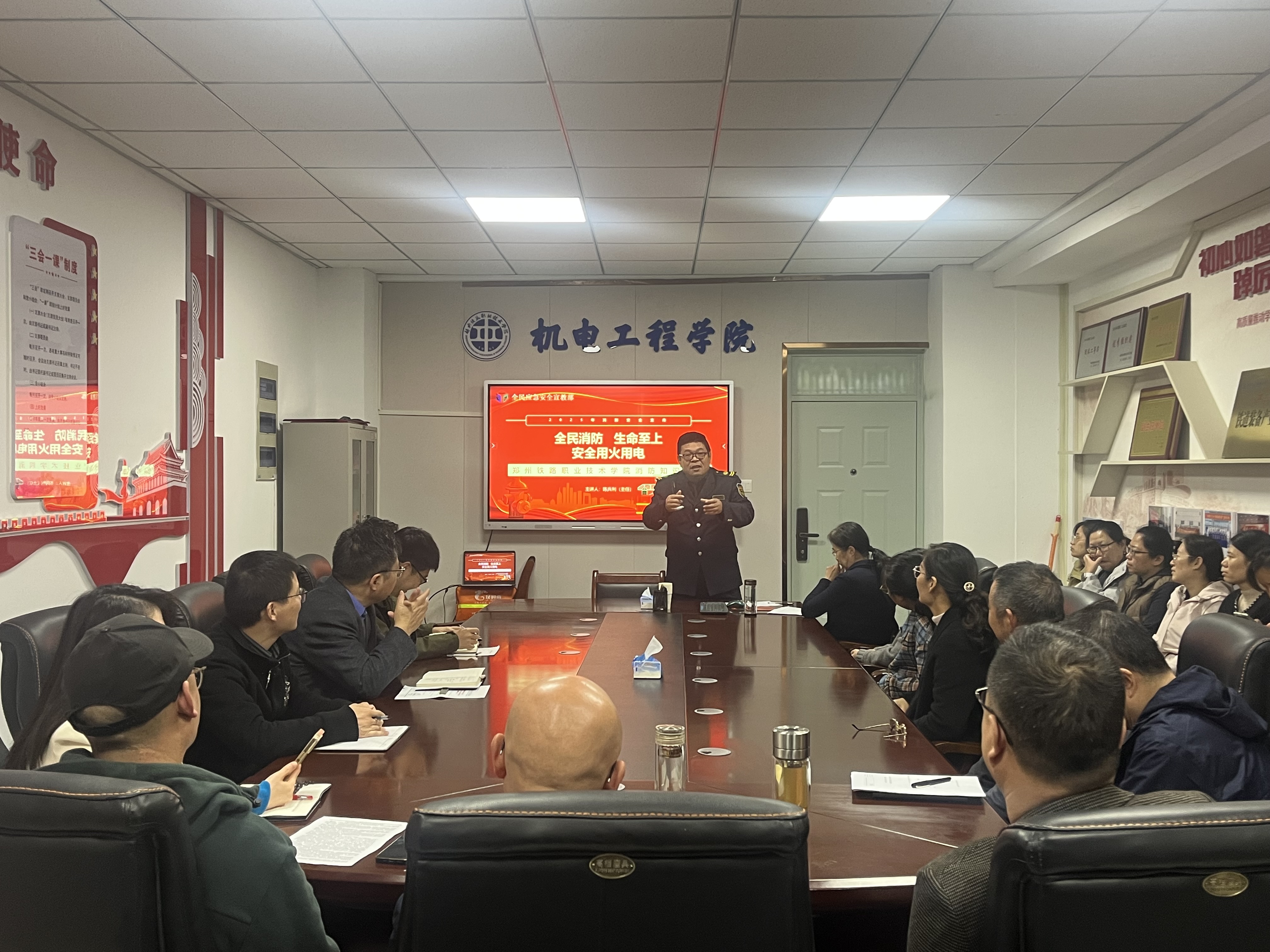 为提高全体教师的消防安全意识,加强消防安全知识的普及,保障全校师生的人身财产安全,12月4日下午,机电工程学院在学院会议室举办教师消防安全知识讲座。本次讲座由河南省消防协会消防宣传与服务中心教员陈兵利主讲,全院40余名教师参加了此次培训。