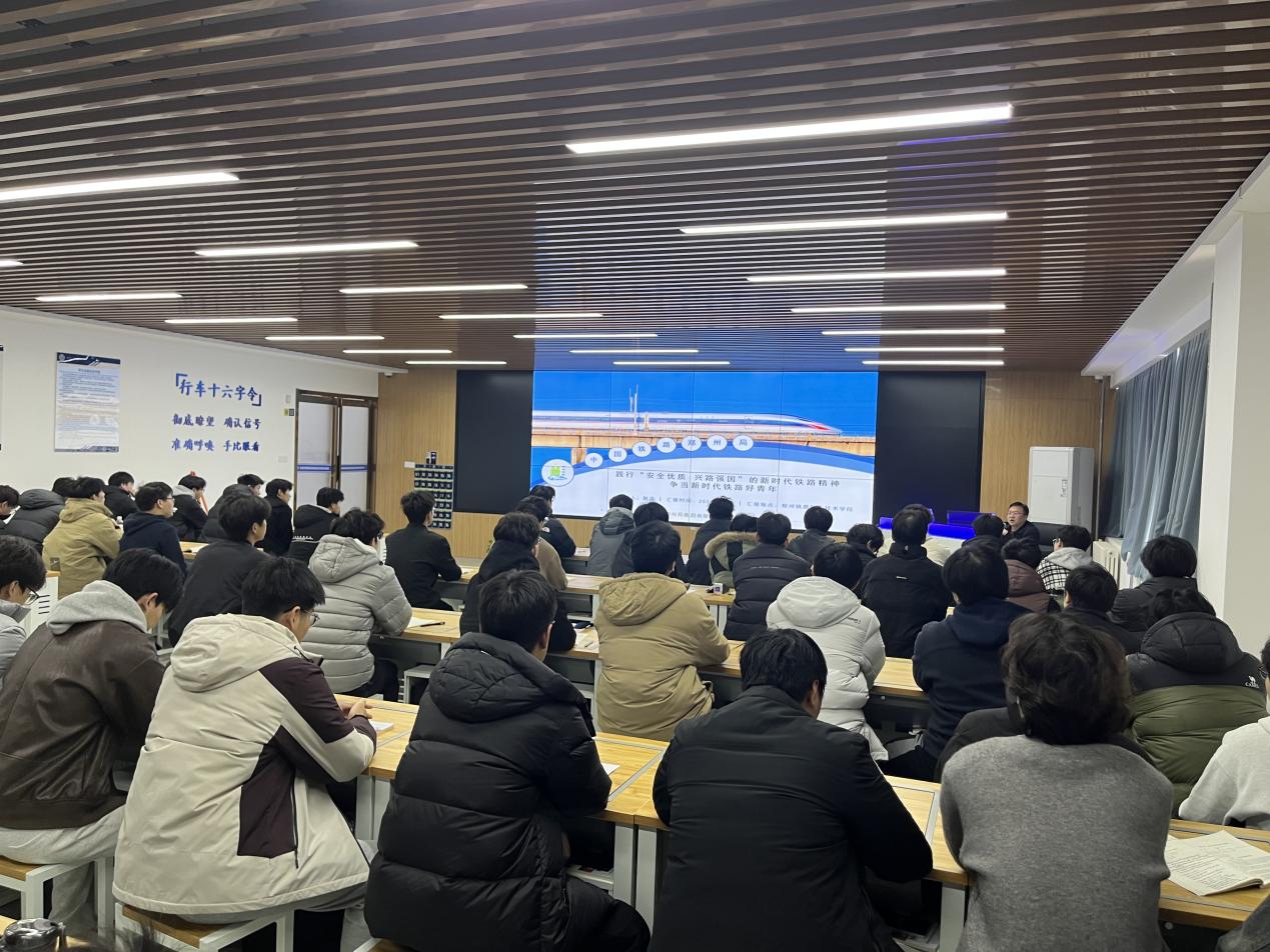 12月5日,中国铁路郑州局集团有限公司郑州工务机械段赵涛走进郑州铁路职业技术学院机电工程学院,以《践行“安全优质 兴路强国”新时代铁路精神,争当新时代铁路好青年》为题,为100余名师生带来一场沉浸式思政课。