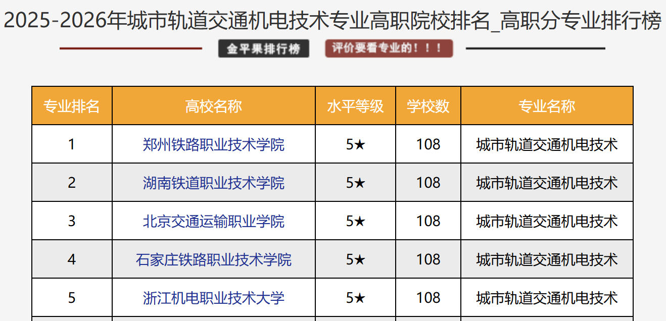 全国第一!我院城市轨道交通机电技术专业再次问鼎 “金平果”高职专业排行榜