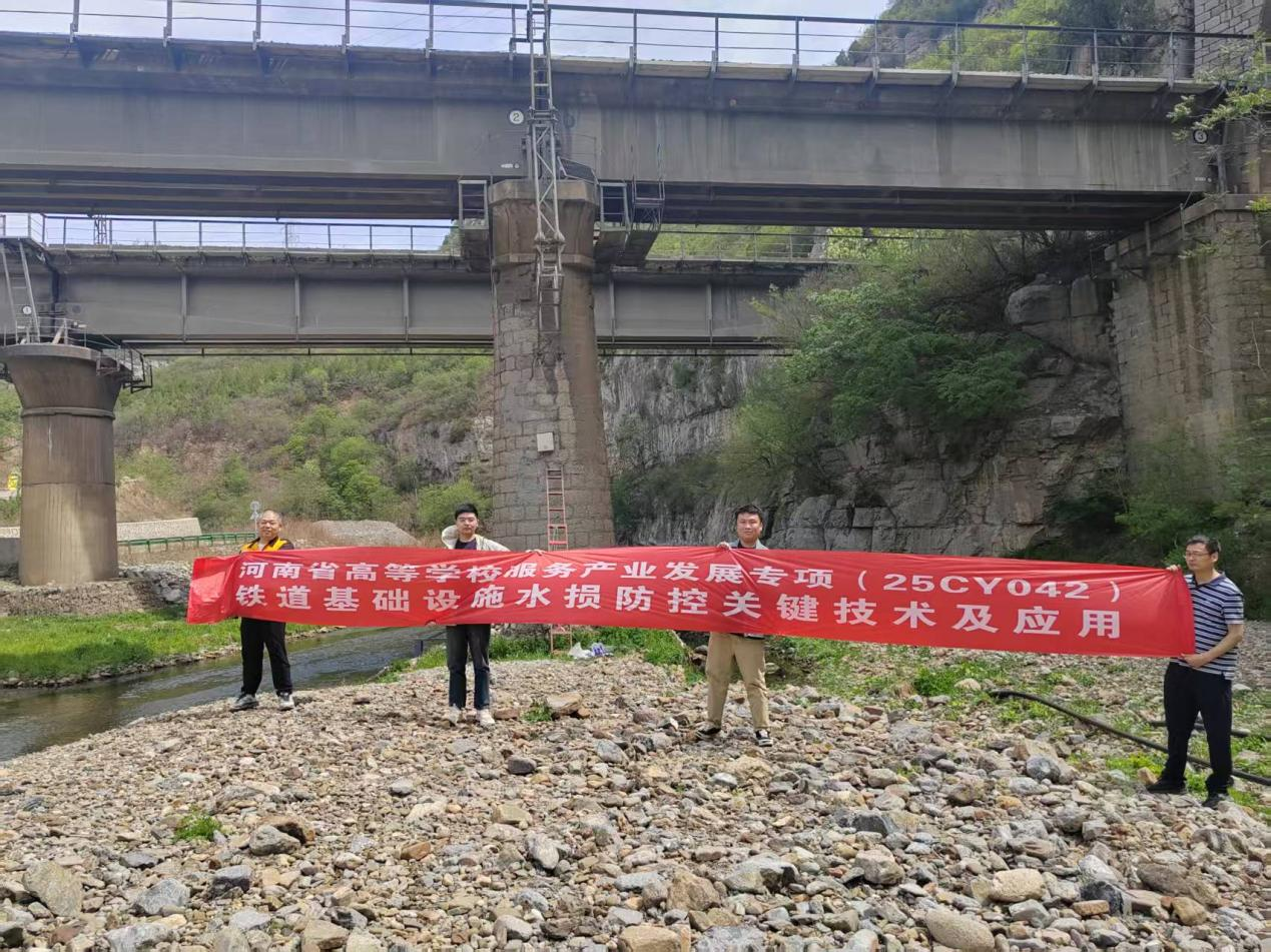 铁路智慧工务技术校企研发中心是河南省教育厅、河南省科学技术厅、河南省工业和信息化厅于2024年批复通过的河南省重点校企研发中心,通过联合中国铁路郑州局集团有限公司郑州桥工段进行合作共建,聚焦铁道基础设施安全防护领域“疑难急险”的病害和灾害,围绕铁路基础设施智能监测与诊断、铁道基础设施安全防护技术、铁路运维安全与应急响应三个领域开展协作研究。目前,通过整合现有检测/监测技术方法,借助现代物联网技术,定制开发出适应于在役工程现场需求的智能设备,如桥墩冲刷监测、钢轨应力测试等已在中国铁路郑州局各工务段开展了试用。