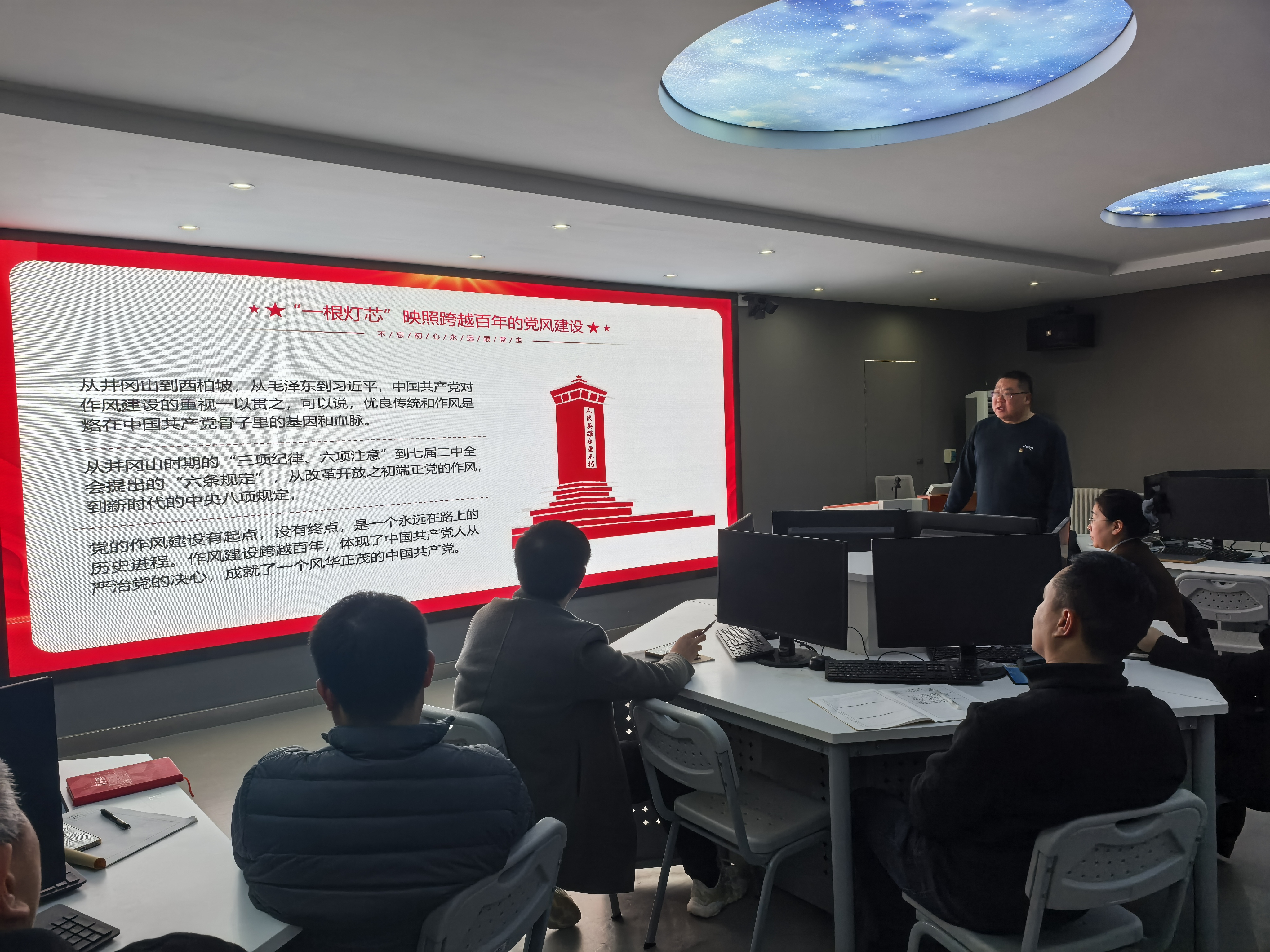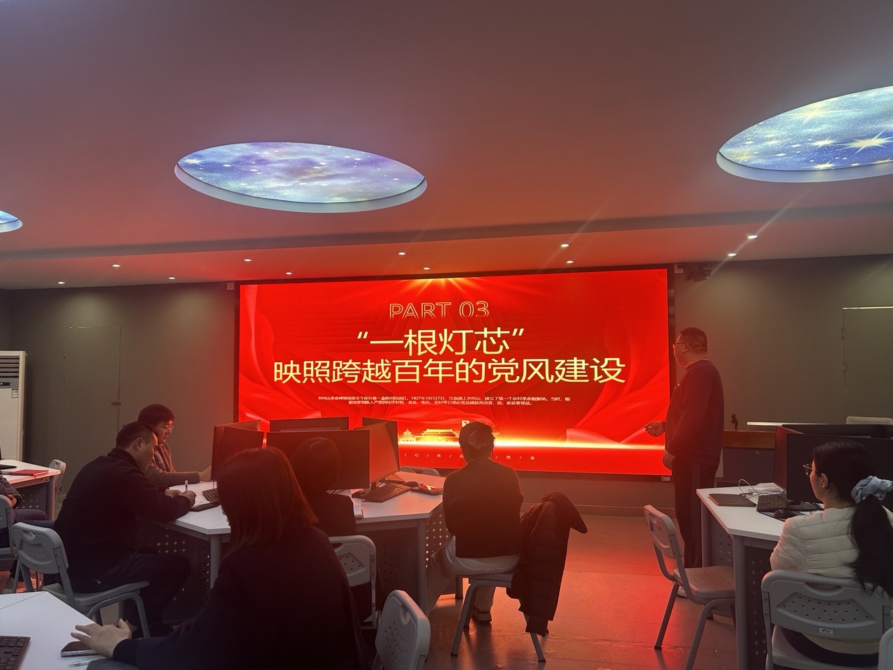 随后,刘燕明从革命精神诠释、勤俭节约传承、党风建设延续、成功密码解读四个维度展开论述。他强调,从井冈山时期的“一根灯芯” 到新时代的 “八项规定”,艰苦奋斗、勤俭节约的优良作风是中国共产党的传家宝。作为高校教工党员,要从红色故事中汲取精神力量,在教学科研、立德树人工作中践行初心使命,杜绝铺张浪费,保持艰苦朴素本色。