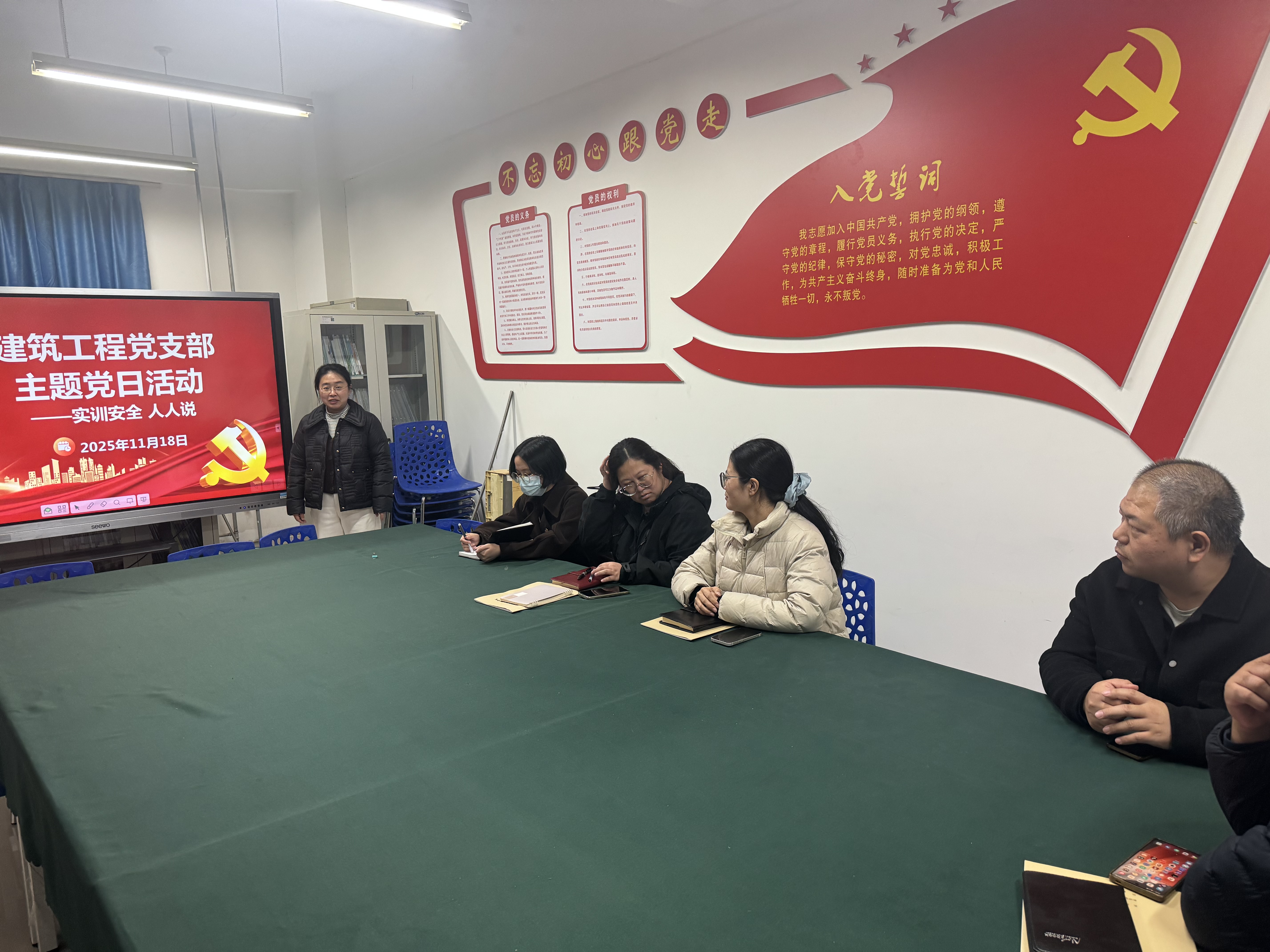 建筑工程党支部会场同样气氛严肃而热烈。支部党员在学习了相关安全文件后,围绕建筑测量、材料检测、施工模拟等实训课程的安全管理要求展开了深入交流。大家从案例入手,反思日常教学中可能忽视的安全细节,共同探讨了如何更有效地进行安全警示教育、如何规范管理实训器材与场地、如何制定并演练切实可行的应急预案等关键问题。会议强调,必须将安全理念贯穿于实训教学的全过程,做到“防患于未然”。