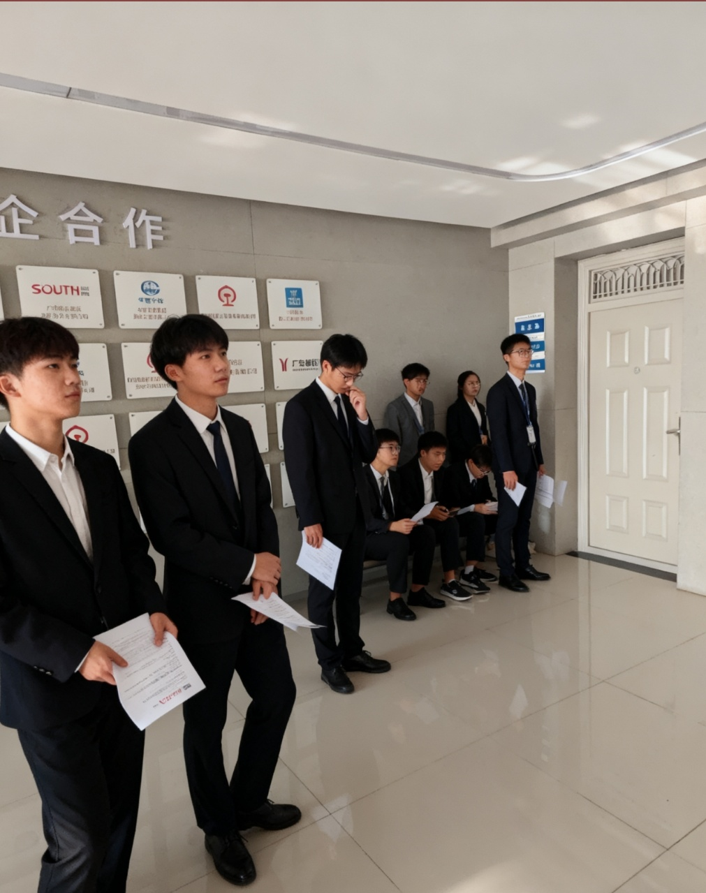 面试现场,同学们统一身着整洁得体的职业装,精神饱满,从容应答企业代表的提问,展现出扎实的专业基础和良好的综合素质。企业招聘人员也耐心解答各类疑问,与学生们进行亲切交流。整个招聘现场既保持着热烈的交流氛围,又秩序井然,体现了我院学子优秀的职业素养。