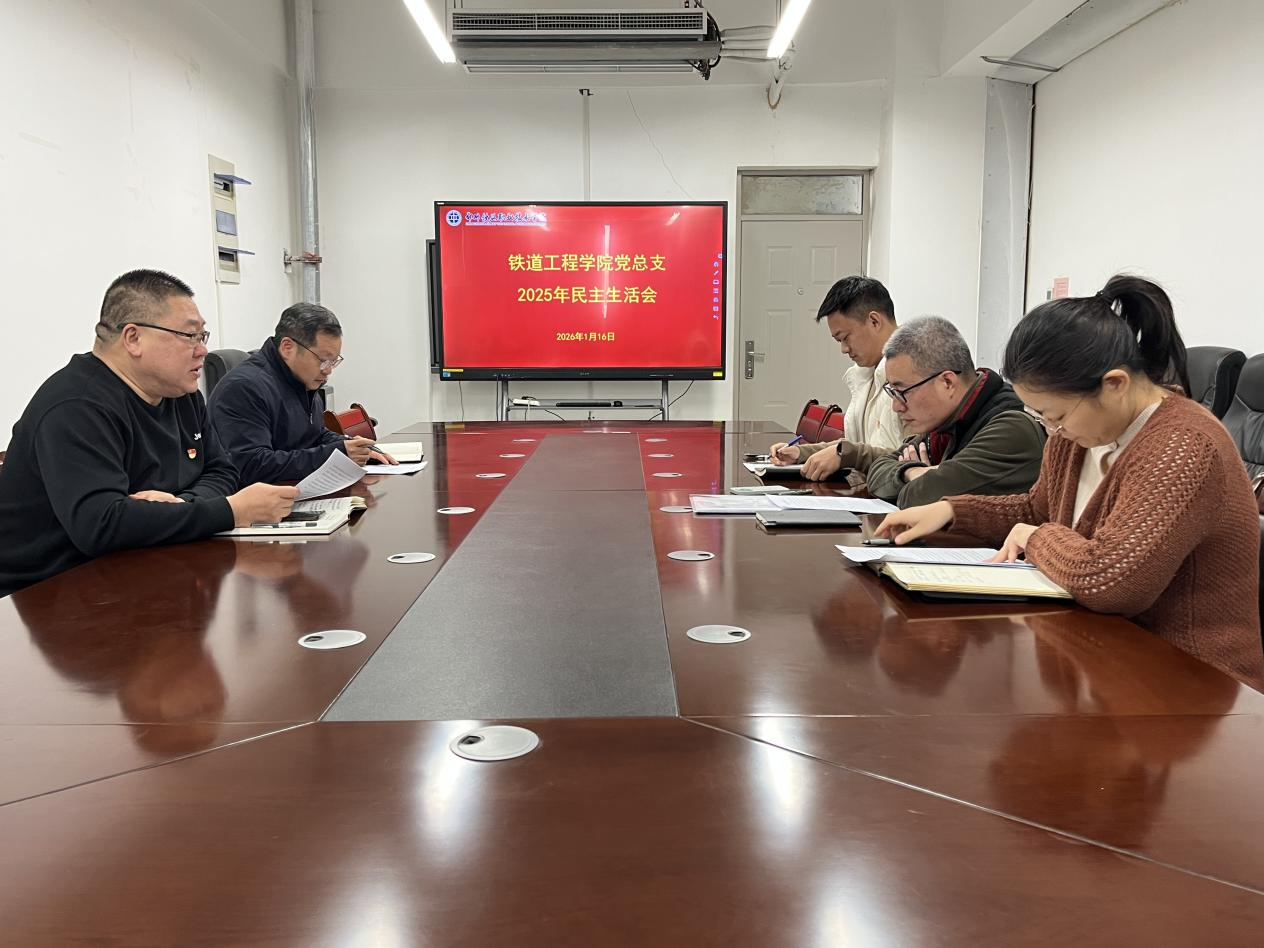 为深入学习贯彻党的二十届四中全会会议精神,以打攻坚战、持久战的决心和恒心,锲而不舍落实中央八项规定精神,进一步增强党组织的凝聚力、战斗力,严肃党内政治生活。按照学校关于开好2025年党员领导干部民主生活会和组织生活会的通知,铁道工程学院党总支于1月16日上午,在6B410会议室组织召开2025年民主生活会。