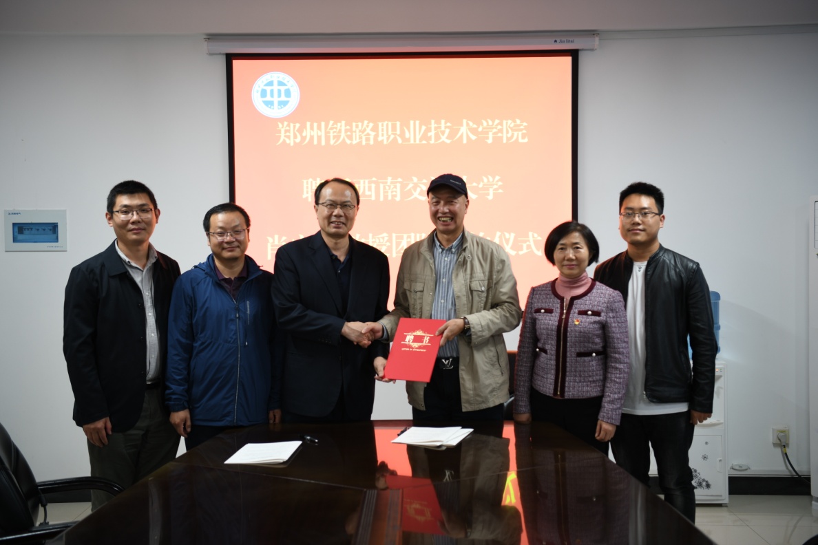 在聘任仪式上,董黎生向肖守讷颁发了兼职教授团队聘任证书,并代表河南省高速铁路运营维护工程研究中心和河南省轨道交通智能安全工程技术研究中心与肖教授签订了聘任协议。