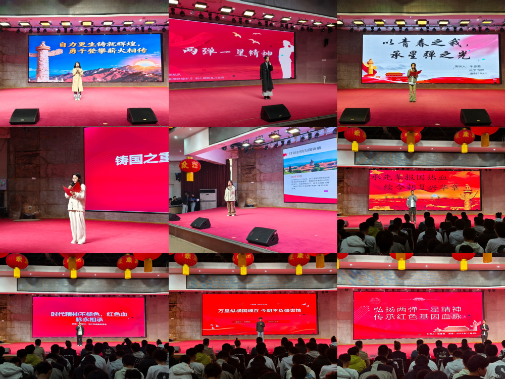 比赛现场,主持人介绍了比赛规则、评分标准及评委组成。参赛选手们依次登台,紧紧围绕“弘扬两弹一星,传承红色血脉”主题,结合自身的学习感悟与时代思考,以饱满的热情、铿锵的语言,从不同角度讲述了钱学森、邓稼先等老一辈科技工作者呕心沥血、隐姓埋名,为研制“两弹一星”作出卓越贡献的感人事迹,阐述了对“两弹一星”精神深刻内涵的理解,表达了青年一代赓续红色血脉、矢志科技报国的坚定决心。选手们的演讲精彩纷呈,扣人心弦。经过激烈角逐,最终评选出一等奖三名、二等奖五名、三等奖八名。