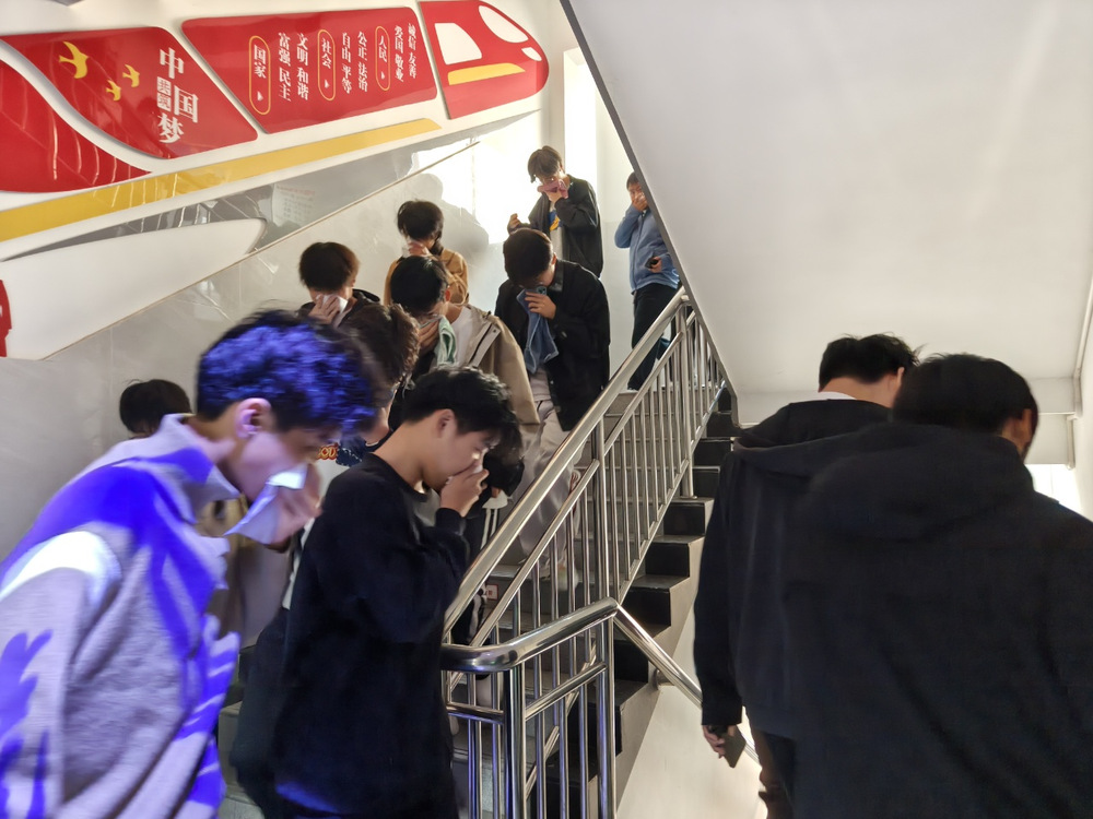 演练分为逃生疏散和实操教学两个核心环节。随着急促的哨声响起,消防报警系统即刻启动,陇海书院“一站式”学生社区的同学们迅速响应,按照预定路线有序撤离宿舍楼,快速集结至安全地带。撤离过程中,大家严格遵循演练要求,将湿毛巾折叠三至四层,弯腰俯身、严密捂住口鼻稳步前行,有效规避烟尘吸入风险。整场疏散演练紧张高效、秩序井然,全程仅用时二分三十秒便圆满完成。