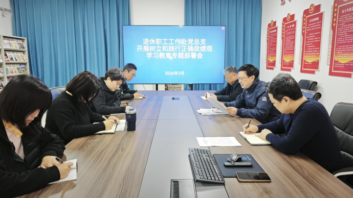 3月5日退休工作处党总支召开会议,传达学习中共中央办公厅《关于在全党开展树立和践行正确政绩观学习教育的通知》和《中共郑州铁路职业技术学院委员会关于在全校党员中开展树立和践行正确政绩观学习教育的工作方案》,部署启动退休工作处学习教育工作。党总支书记、处长张隽永主持会议,退休工作处全体党员参加。