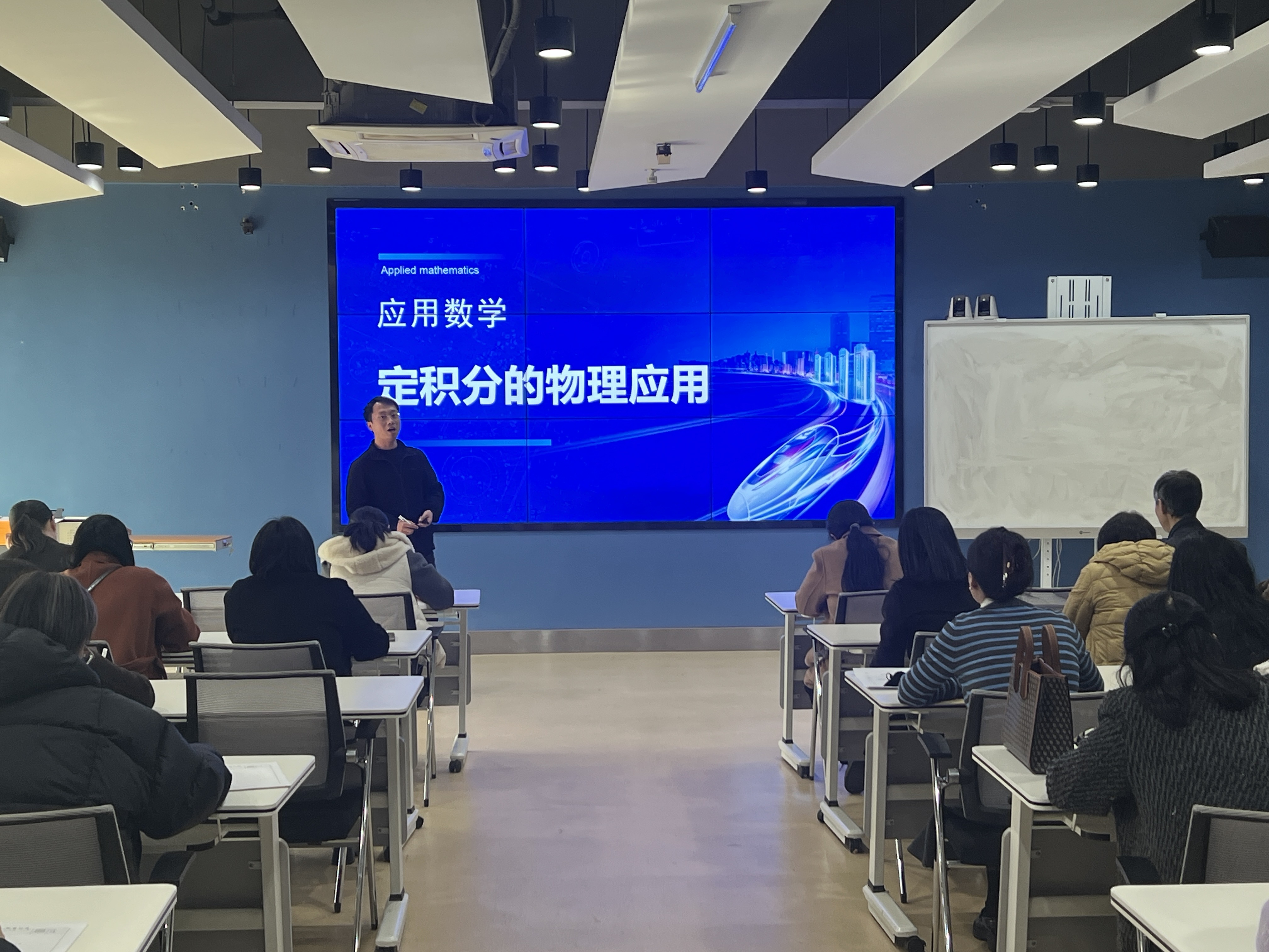 马茜老师的《中华优秀传统文化》课紧扣“经世致用”,将经典思想与当代职场结合,让传统文化落地实用。赵豪杰老师的《应用数学》聚焦 “定积分的物理应用”,以生活力学现象为切入点,通过实操习题帮助学生掌握数学工具解决实际问题的方法。英语组《大学英语》以 “餐饮服务” 为主题,通过情景模拟、角色扮演,提升学生职场英语应用能力。