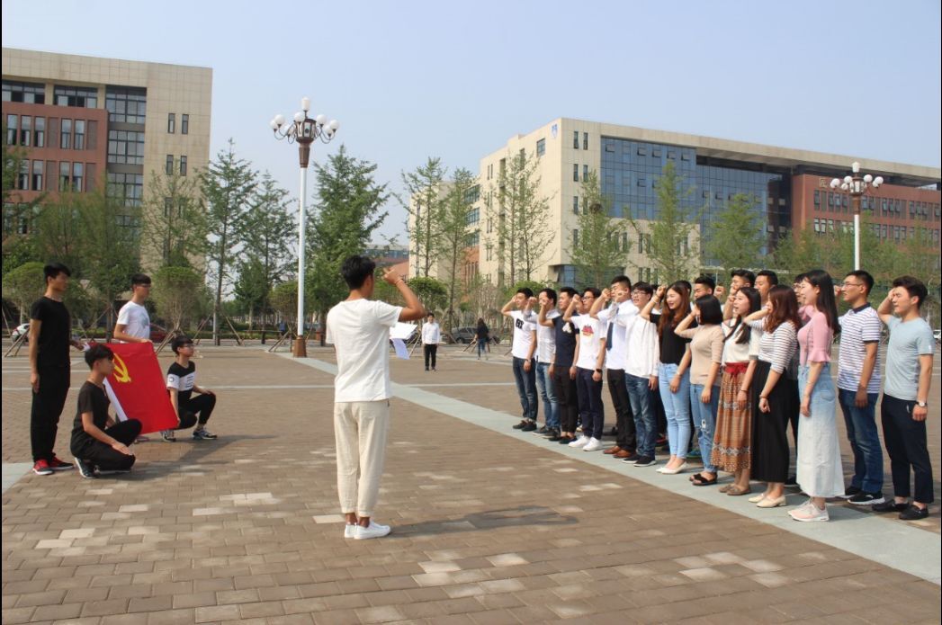 2017年6月6日在2017届毕业生即将毕业踏出校园之际,国际教育(欧亚交通)学院在新校区铁龙广场隆重举行了2017年新党员入党宣誓仪式。学院党总支副书记曹启勇、学工办主任任冉、以及本院47名预备党员参加了本次活动。宣誓仪式由党总支副书记曹启勇主持,预备党员代表高峰带领全体人员进行了入党宣誓。 全体新党员在党旗前郑重的宣誓,表达了他们对党的庄严承诺。