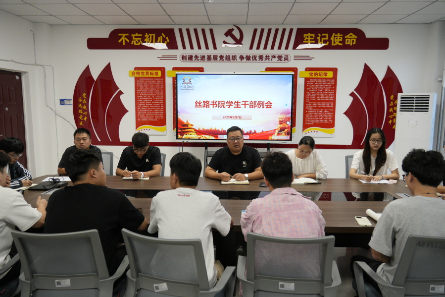 9月7日,丝路书院在书院二楼会议室召开新学期学生干部例会。分团委书记张晓远、副书记索利巧以及23级学生干部参加了会议。