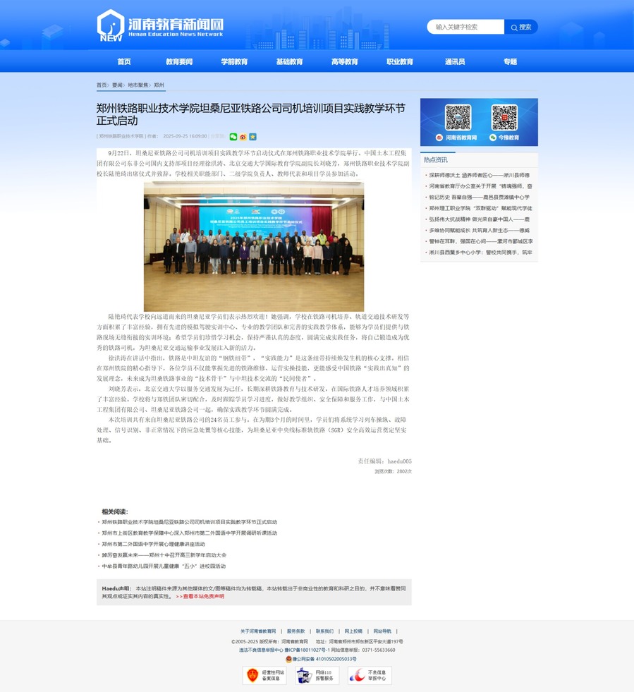 河南省教育新闻网:郑州铁路职业技术学院坦桑尼亚铁路公司司机培训项目实践教学环节正式启动