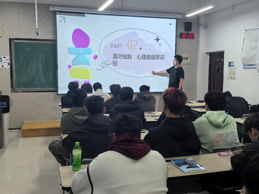 班会以精心设计的PPT为载体,围绕“秋日心语:心理健康基础”主题开启,系统讲解心理保健的核心知识,帮助学生建立对心理健康的科学认知。随后,“落叶知秋:心理疾病早识别”模块通过案例与图文结合的方式,解析焦虑、抑郁等心理问题的早期信号,引导学生以敏锐视角察觉心理状态变化。