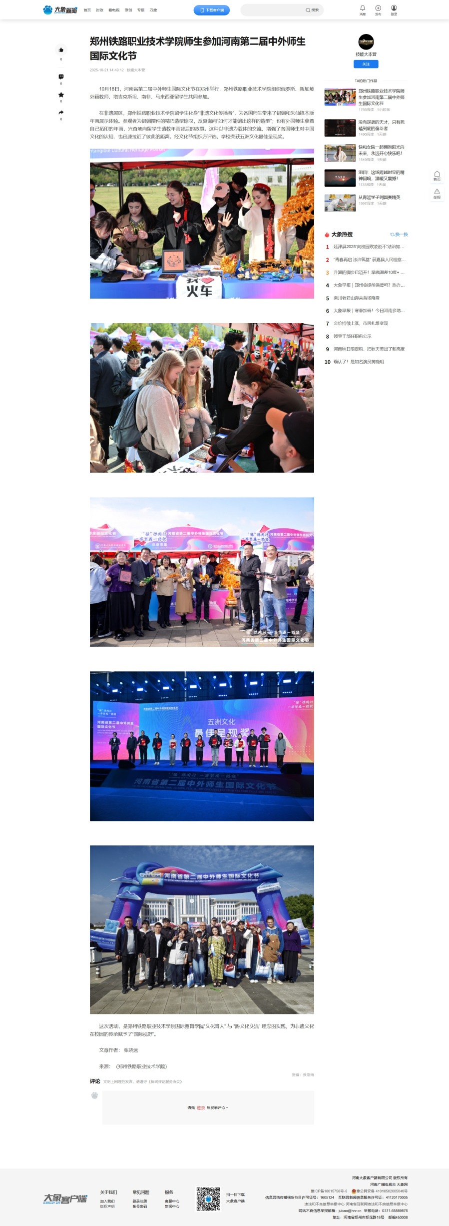 大象新闻:郑州铁路职业技术学院师生参加河南第二届中外师生国际文化节