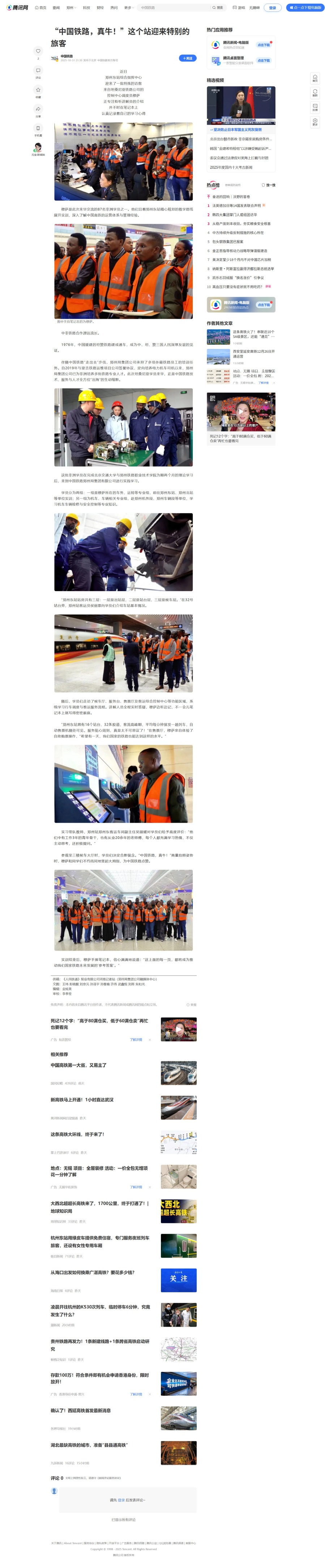 腾讯新闻:“中国铁路,真牛!”这个站迎来特别的旅客