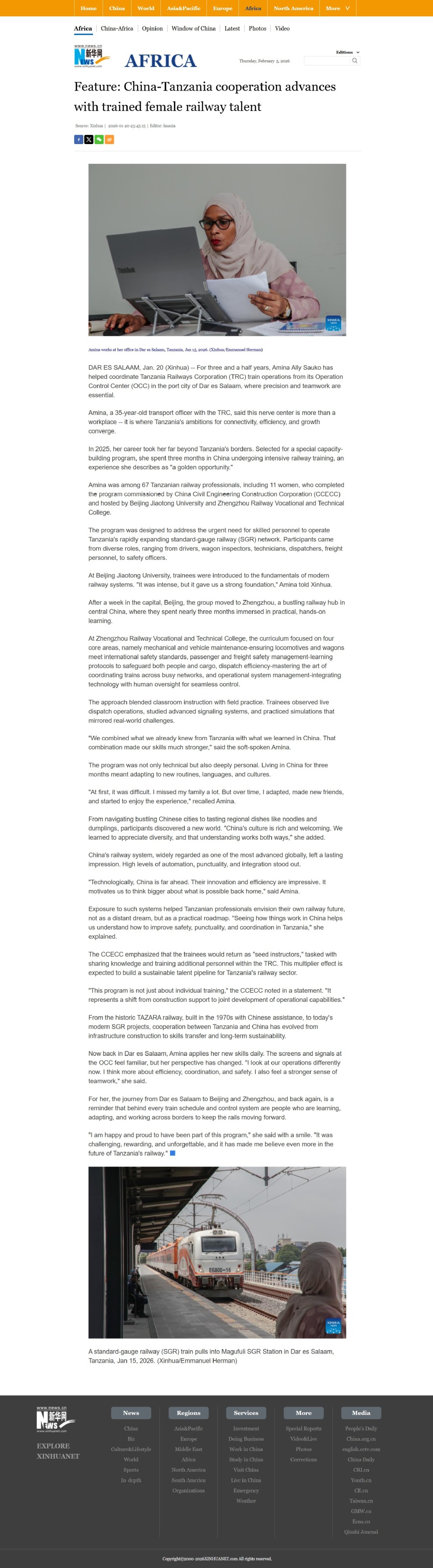 新华网: China-Tanzania cooperation advances with trained female railway talent