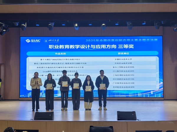 11月22-23日,2025年全国仿真创新应用大赛总决赛在四川大学望江校区成功举办。我校马克思主义学院胡宪刚、侯彬彬、朱令娴、尹航团队在仿真教学应用赛道荣获全国三等奖。