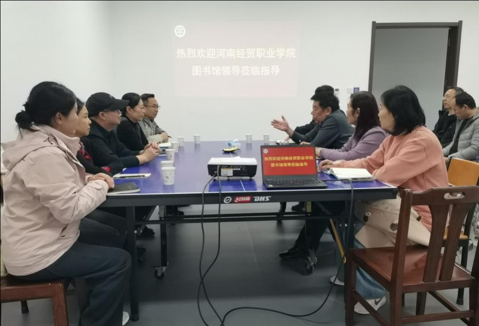 11月26日,河南省高校图书馆工作委员会高职分会主任娄冰携河南经贸职业学院图书馆相关工作人员一行7人莅临我校图书馆进行参观交流。我校图书馆馆长马世来,副馆长申娴、李勇强及相关科室负责人热情接待了来访嘉宾,双方就新时期高校图书馆的建设与发展进行了深入研讨。