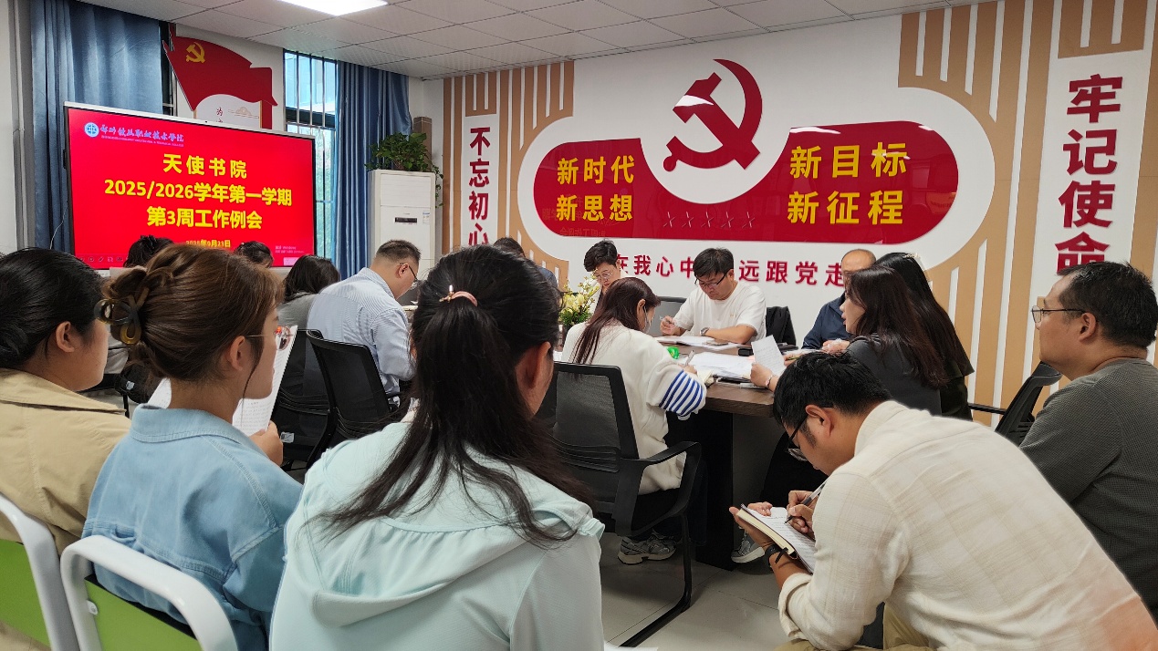 9月23日中午,天使书院在二楼会议室召开第二周学生工作例会,书院班子成员及专兼职辅导员参加会议。会议由副院长王小珂主持。