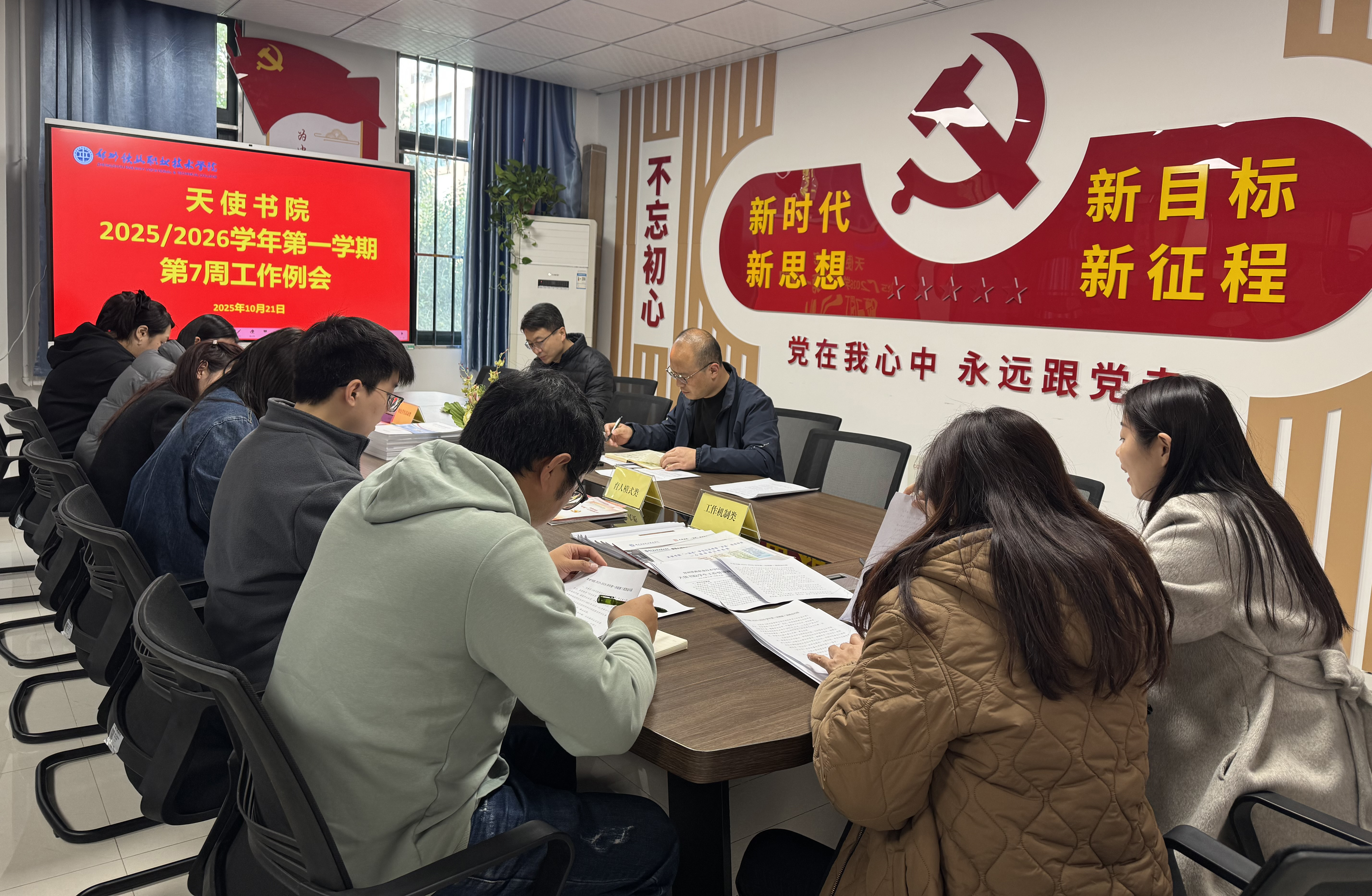 10月21日中午,天使书院在二楼会议室召开第七周学生工作例会,书院班子成员及专兼职辅导员参加会议。
