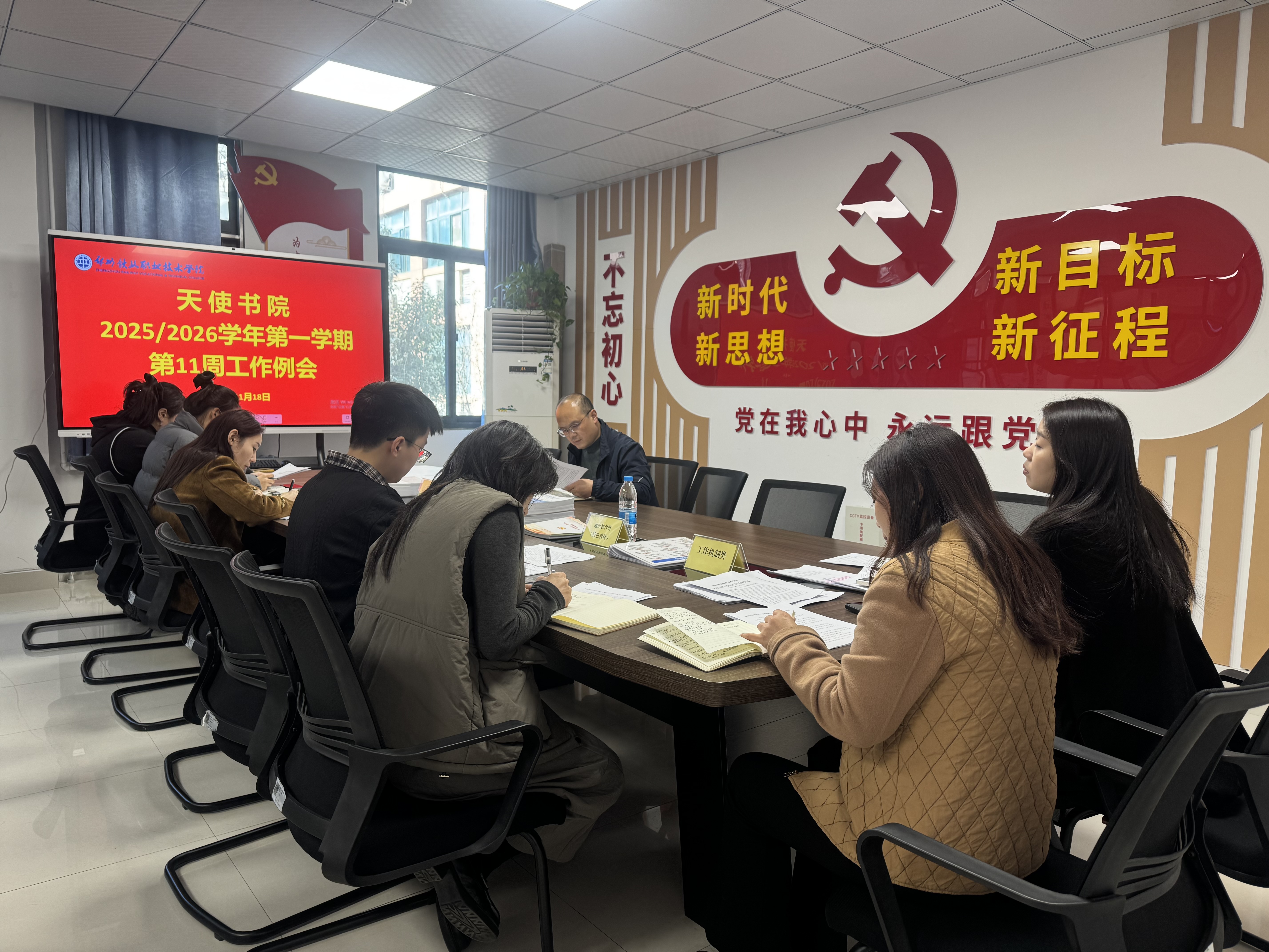 11月18日中午,天使书院在二楼会议室召开第十一周学生工作例会,书院班子成员及专兼职辅导员参加会议。