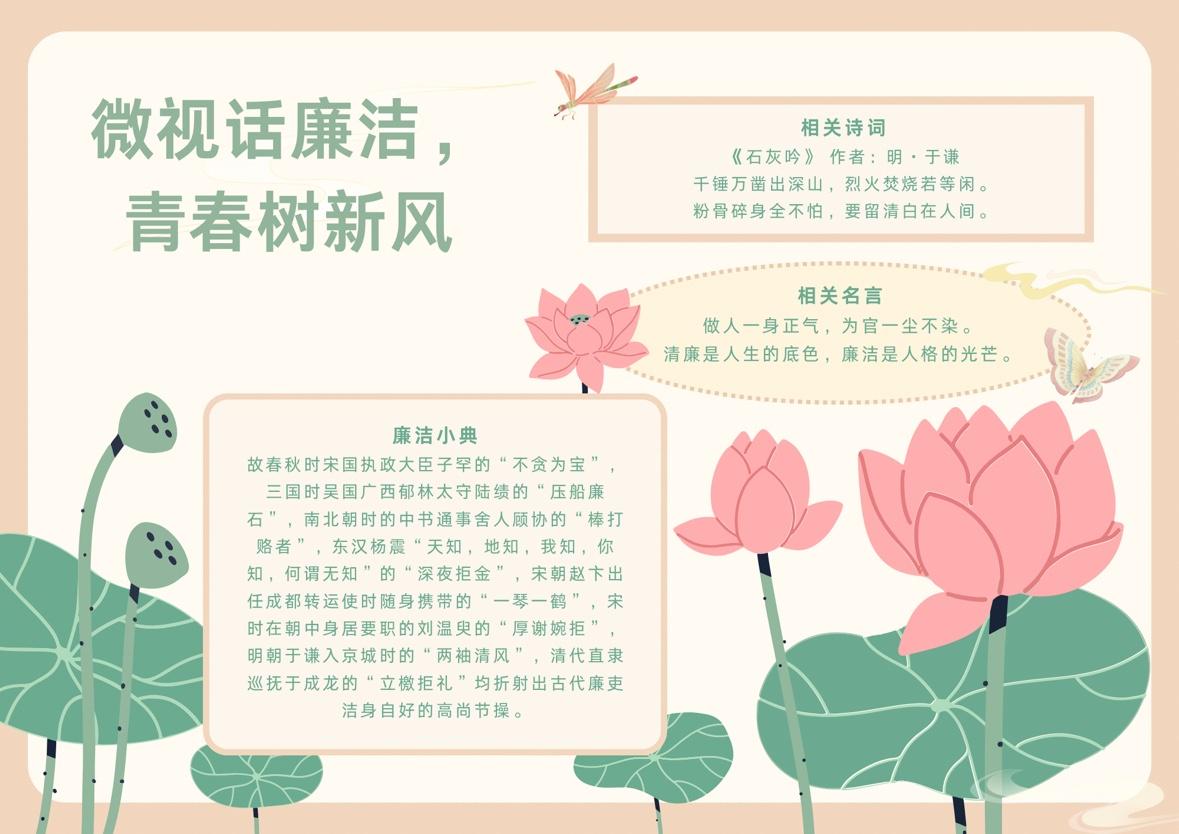 为深入推进校园廉洁文化建设,引导青年学生将廉洁理念内化于心、外化于行,天使书院近期组织开展“微视话廉洁,青春树新风”主题活动。活动分为视频创作、手抄报绘制和摄影作品三类形式,不仅有助于提升学生文化素养、促进全面发展,也展现了书院良好的精神风貌,进一步增强了集体凝聚力。