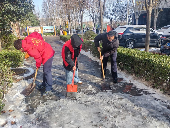 活动中,志愿者们不畏严寒、主动担当,迅速集结。他们身着统一红色志愿服,手持铁锹、雪铲、扫帚等工具,重点对书院周边道路、楼梯台阶、教学楼连接主干道等师生高频通行区域进行集中清理。现场井然有序,志愿者们配合默契,挥锹破冰、铲雪清路,忙碌的红色身影在皑皑白雪中构成了一道温暖而靓丽的风景线。经过数小时连续奋战,主要通行区域的积雪暗冰被彻底清除,有效保障了师生的安全出行。