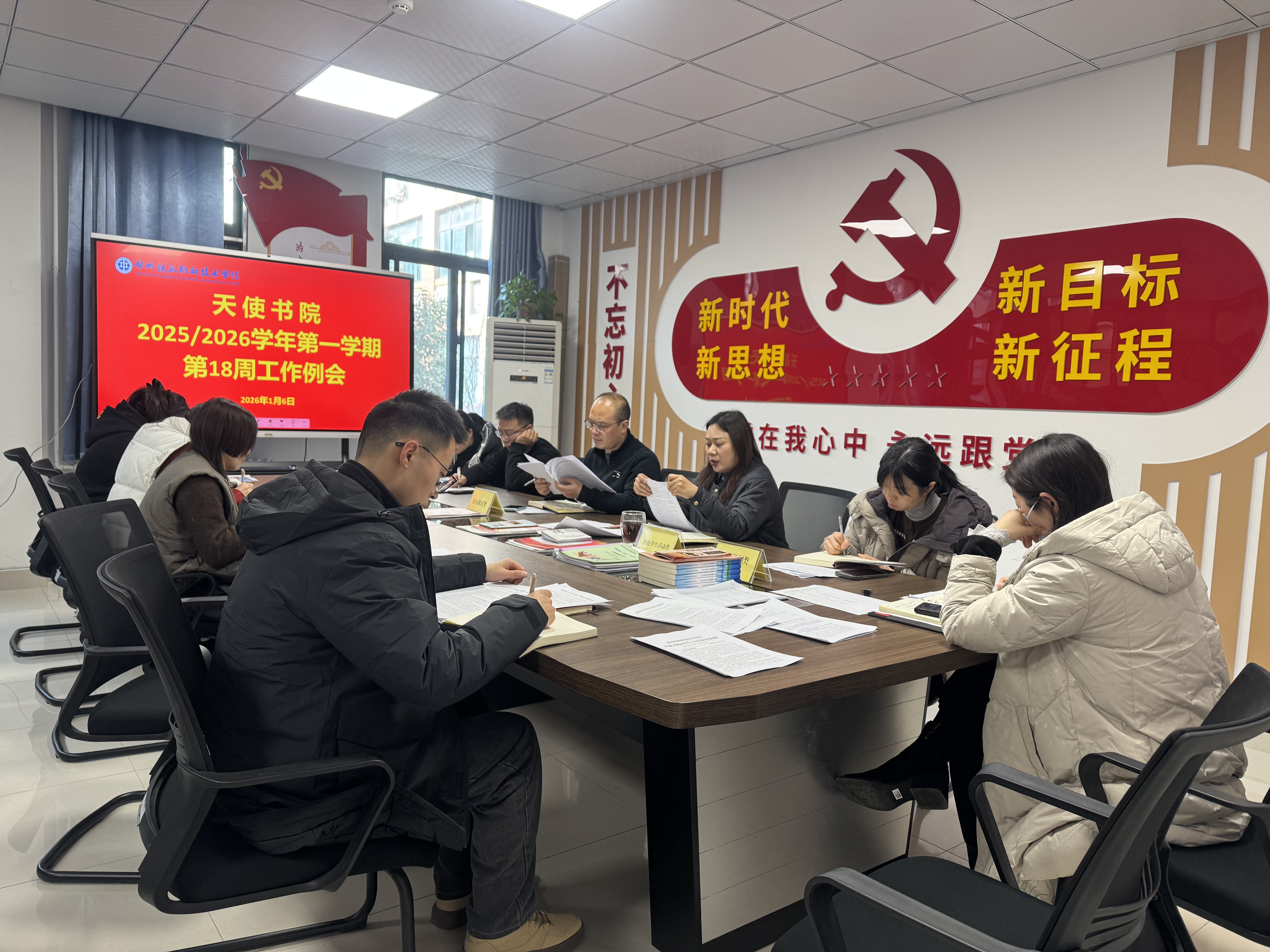 1月6日中午,天使书院在二楼会议室召开第十八周学生工作例会,书院班子成员及专兼职辅导员参加会议。