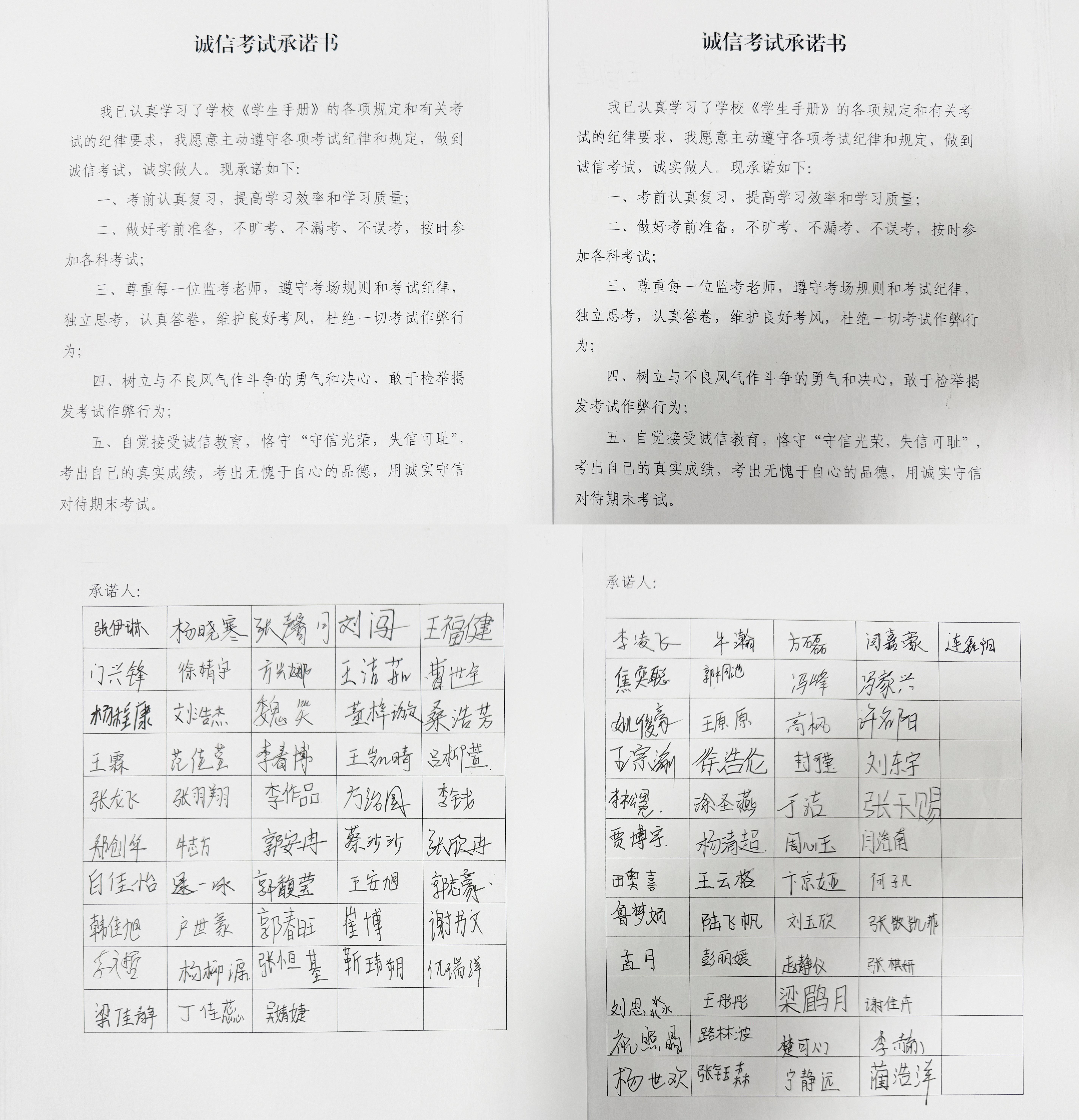 在辅导员(班主任)的带领下,全体学生郑重签署《诚信考试承诺书》,承诺严格遵守考场纪律,自觉维护考试秩序,坚决抵制并举报各类违规作弊行为。书院还特别关注学业困难学生,组织优秀学生骨干开展针对性帮扶,通过学业指导与心理疏导相结合的方式,有效缓解学生的备考压力。