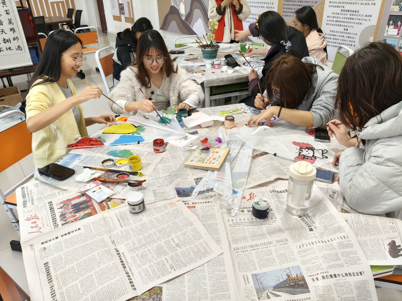 活动伊始,工作人员精心布置场地,备齐空白纸鸢、颜料等创作物料。同学们以风筝为创作载体,用画笔描绘心中的绿色愿景,巧妙融合自然元素与环保主题。在创作过程中,大家充分发挥想象力与创造力,将对美好生态环境的向往寄托于笔尖。一幅幅色彩绚丽、寓意深远的环保风筝陆续完成,既展现了青年学子对春天的礼赞,也传递出共建美丽家园的真诚期盼。
