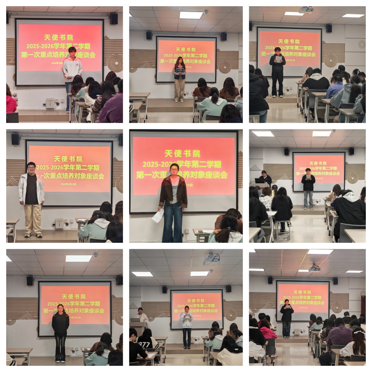 为强化学生骨干队伍建设,充分发挥自管会、团学组织在书院发展中的桥梁纽带作用,近日,天使书院召开2025-2026学年第二学期首次重点培养对象座谈会。天使书院党总支副书记李文煜、相关指导教师及2025级自管会、团学组织全体重点培养对象参加会议。