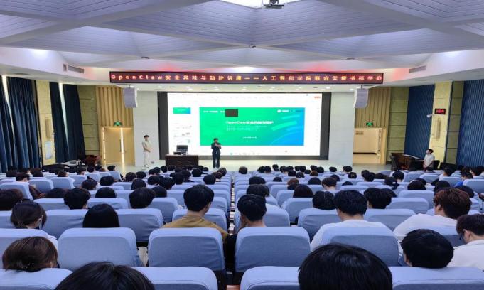 下午14:30,首场讲座“OpenClaw安全风险与防护”由李海宇工程师主讲,他结合典型案例,深入剖析了开源AI工具面临的安全隐患,并详细讲解了OpenClaw的防护策略,引导师生树立规范、安全使用人工智能的意识,增强在专业实践中防范风险的能力;16:30,李正东专家主讲“AI驱动教育创新”讲座,他围绕人工智能发展趋势,分享了阿里在AI领域的最新成果及OpenClaw的实际应用场景,帮助师生明晰AI与专业结合路径,激发创新思维。两场讲座务实高效、案例鲜活,现场互动热烈,师生反馈积极,既有效筑牢了AI应用的安全防线,也为师生专业成长指明了方向,达到了提升数智素养的预期目标。
