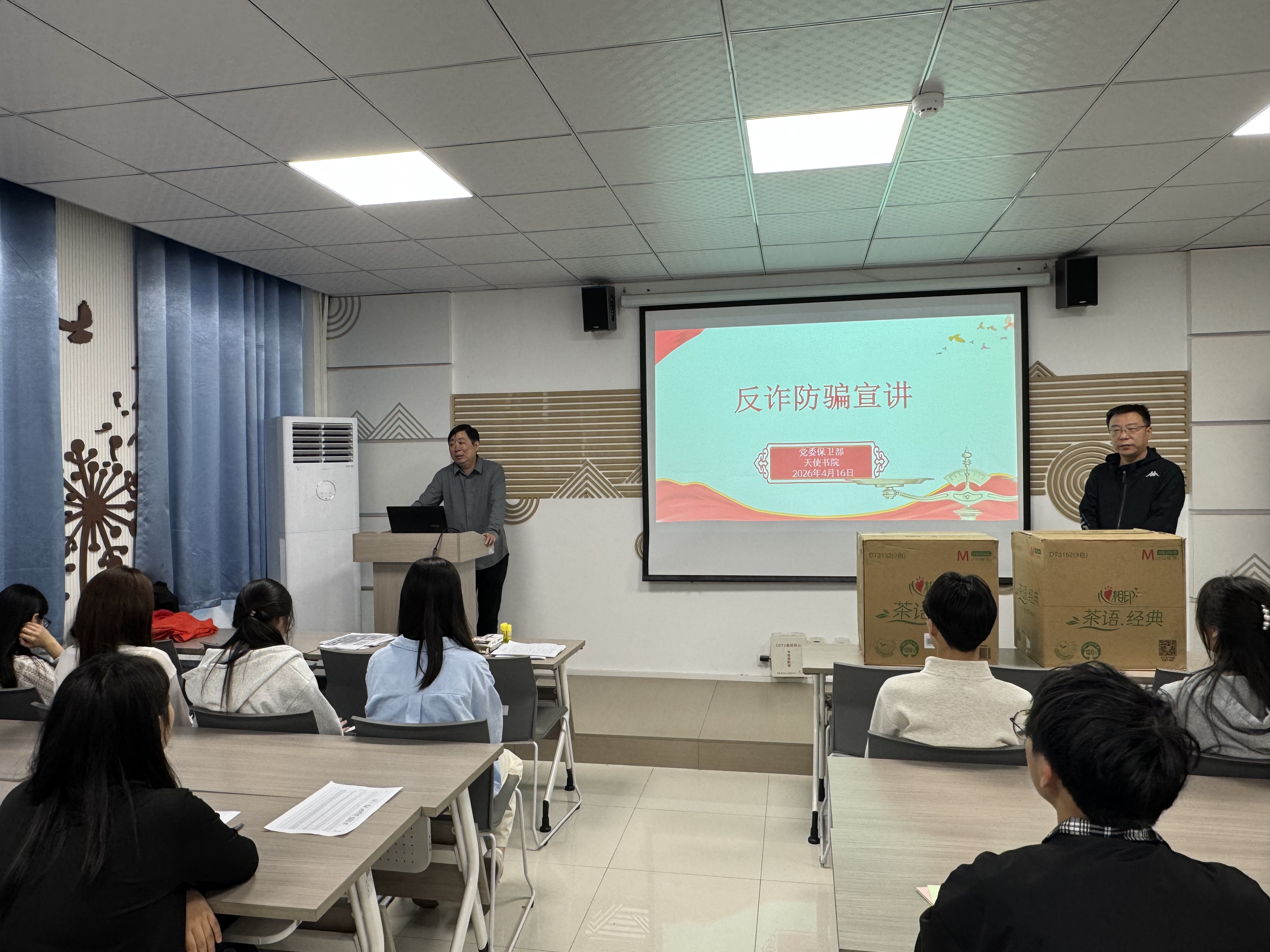活动最后,党委保卫部副部长丁宁结合典型案例开展反诈防骗专题教育。他围绕校园安全注意事项及常见电信网络诈骗类型,深入浅出地解读相关法律法规,重点剖析了刷单返利、冒充客服退款等高发诈骗套路,并传授“不轻信、不透露、不转账”的防骗要诀。