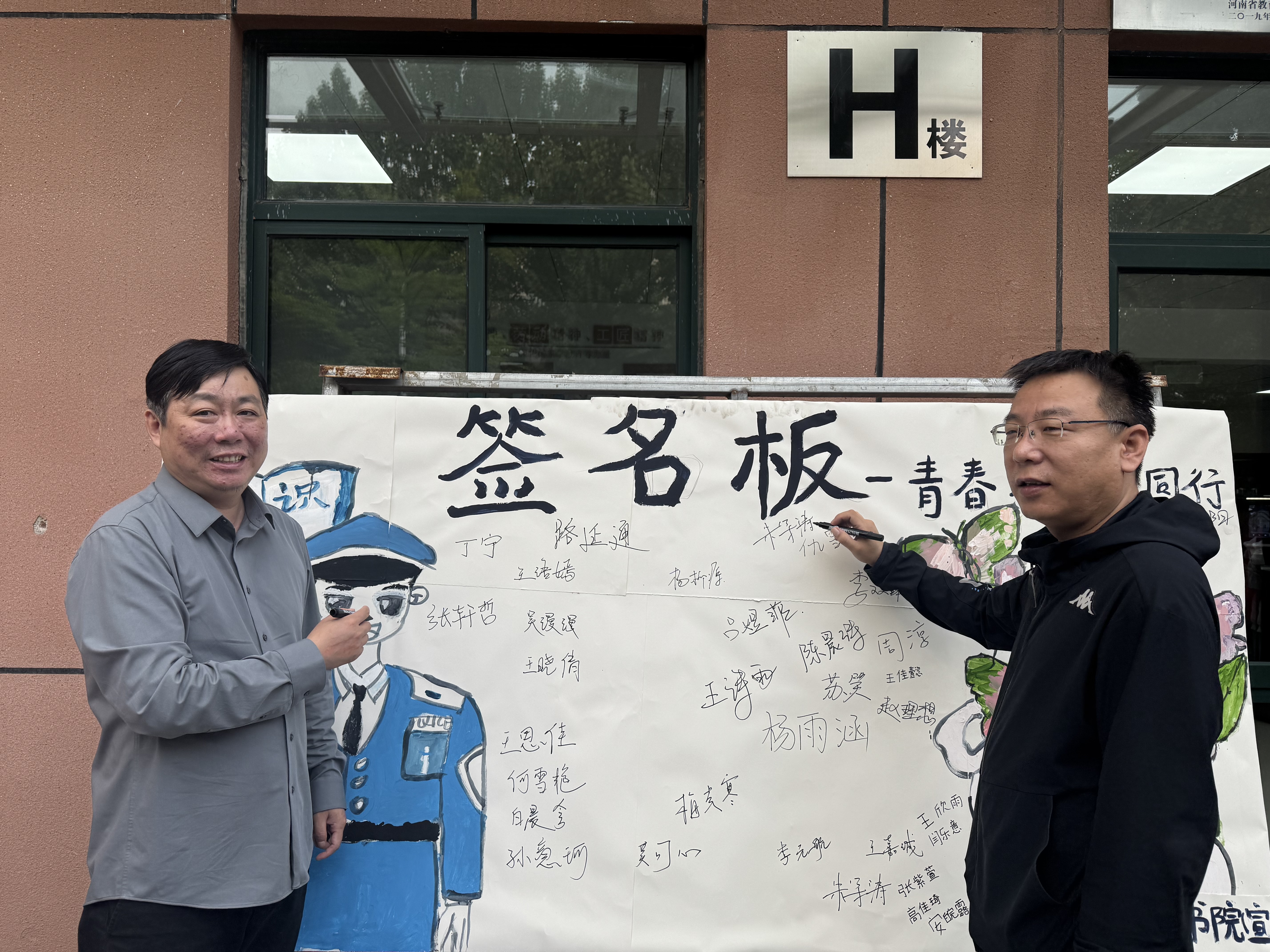活动伊始,书院大门口的法治签名墙前人头攒动。师生们依次提笔签名,以实际行动表达尊法学法守法用法的坚定决心。签名墙旁设有法治宣传展板,图文并茂地普及法律基础知识及常见电信网络诈骗防范要点,吸引众多师生驻足学习,营造出浓厚的法治与反诈宣传氛围。