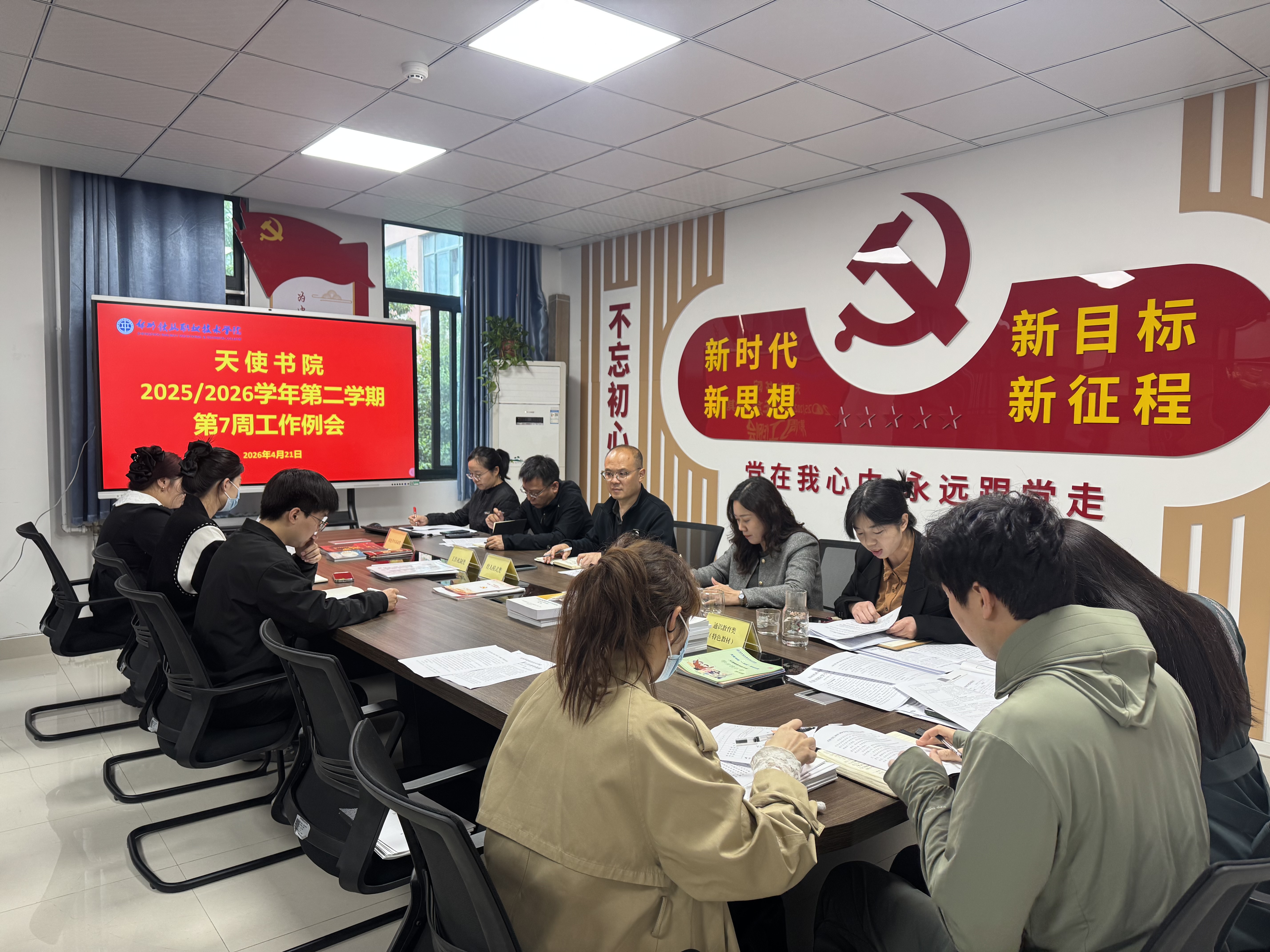 4月21日上午,天使书院在二楼会议室召开新学期第七周学生工作例会,书院班子成员及全体专兼职辅导员参加会议。