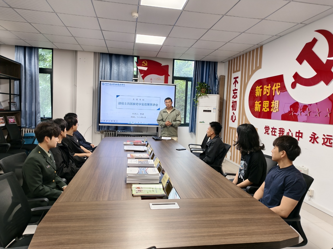 会上,何峰老师围绕退役士兵国家助学金的核心政策,结合2026年最新要求,从申请对象、申报条件、办理流程、资助标准、发放方式五个方面进行了系统解读。他用通俗易懂的语言逐一扫清政策盲区,帮助学生做到“应知尽知、应享尽享”。