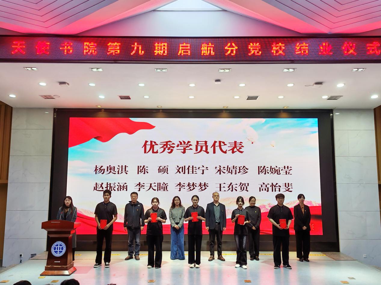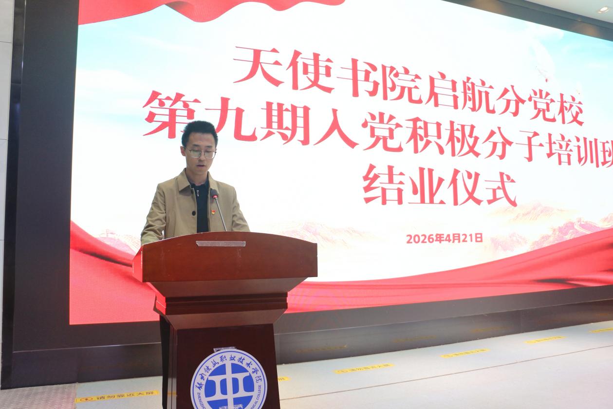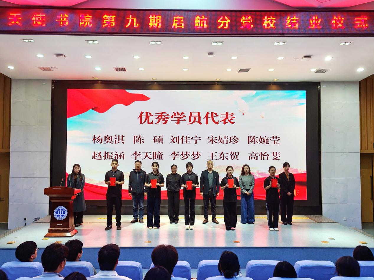 4月21日,天使书院启航分党校第九期入党积极分子培训班结业仪式在学校第二报告厅举行。书院领导班子成员、全体育人导师及234名学员参加仪式。仪式由书院办公室主任、组织员马鹏飞主持。