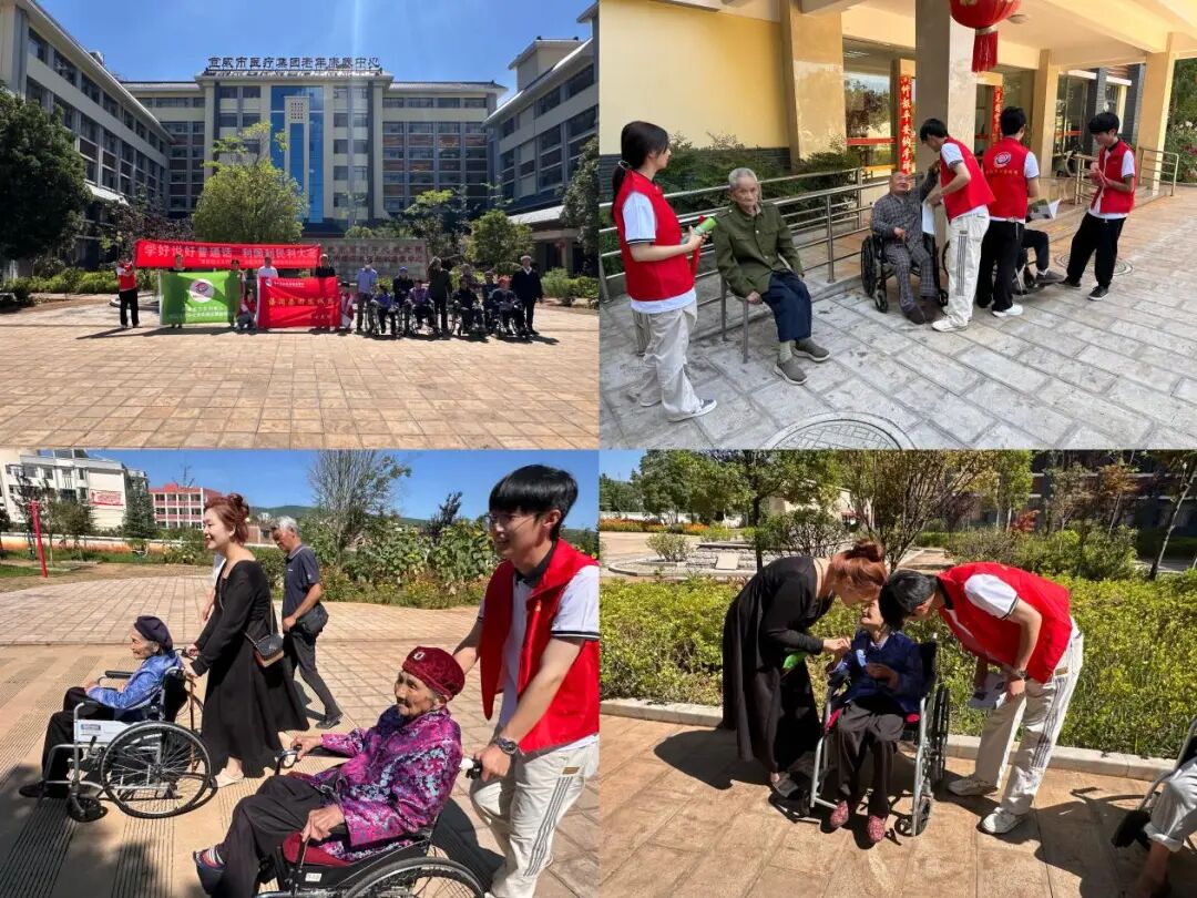 “奶奶,跟我读——‘你好,我是宣威人’!”在宣威市老年康养中心,实践团开设“银发普通话课堂”。队员们蹲在老人身边,一字一句耐心教学,还将常用语句编成顺口溜。“谢谢娃娃们!我孙子在昆明上学,以后视频我能用普通话夸他啦!”93岁的李奶奶握着队员的手笑得灿烂。活动中,学生们推着轮椅陪老人散步,用手机播放戏曲节目,方言与普通话交织的欢声笑语回荡在庭院。这一幕被镜头定格,成为团队相册中最温情的画面。