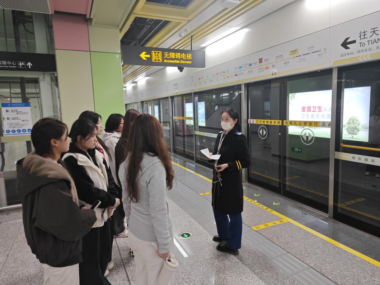 为加深同学们对地铁客运服务的理解,提升专业认知与实践能力,11月21日,大学生“复兴启航”高铁服务协会组织学生前往郑州地铁8号线,开展了一次富有意义的认识性志愿服务活动。本次活动获得各方大力支持,为学生搭建了理论与现实衔接的学习平台。