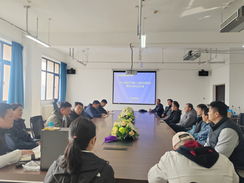 10月20日至23日,中国共产党第二十届中央委员会第四次全体会议在北京举行,全会审议通过了《中共中央关于制定国民经济和社会发展第十五个五年规划的建议》。10月28日,体育教学部组织全体教职工在科创楼414室召开专题学习会,深入学习贯彻党的二十届四中全会公报,推动全会精神落地生根、见行见效。