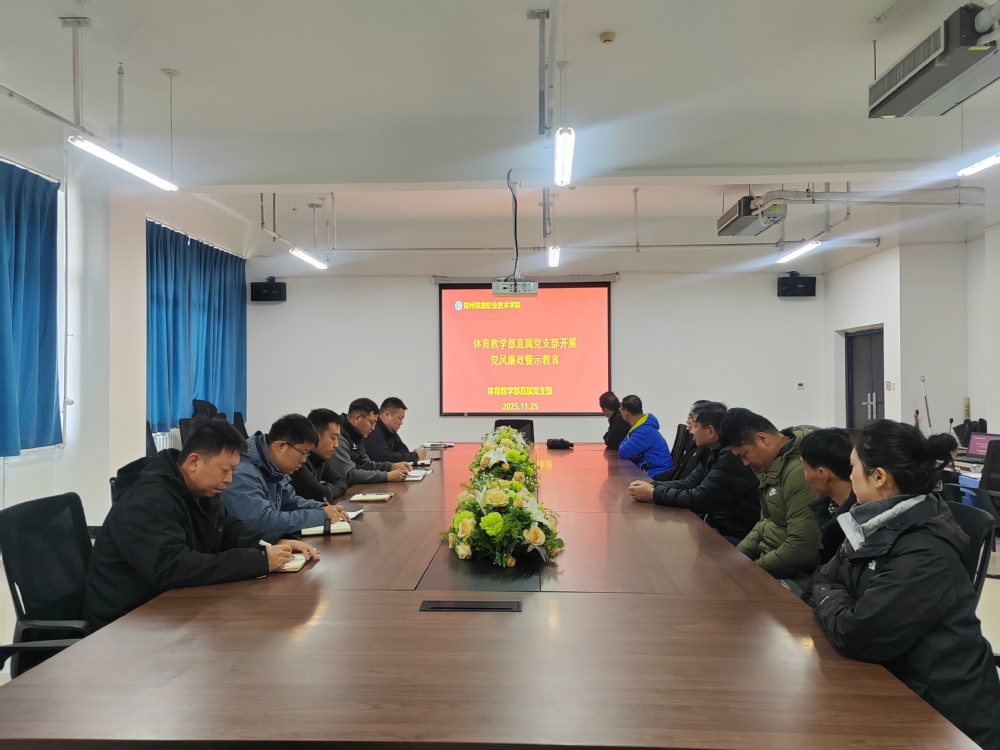 活动伊始,支部书记曹翔围绕“体育领域廉政风险点”作专题宣讲,结合高校体育器材采购、赛事组织、体育活动经费使用等关键环节,梳理潜在廉政风险,强调党员教师需严守纪律底线,杜绝“微腐败”。随后,全体党员集中观看党风廉政警示教育片,通过真实案例剖析违规违纪行为的危害与后果,引导党员教师深刻汲取教训,做到知敬畏、存戒惧、守底线。
