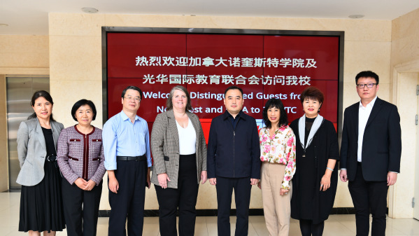 10月18日加拿大诺奎斯特学院健康研究学院院长詹妮弗·马、护理专业学术负责人艾莎·桑顿一行在光华国际教育联合会秘书长贡丽华的陪同下访问我校。中加双方共同召开了2023年合作办学管理委员会会议。党委书记田道敏、副校长倪居,及其他联合管理委员会委员和二级学院负责人参加了会谈。