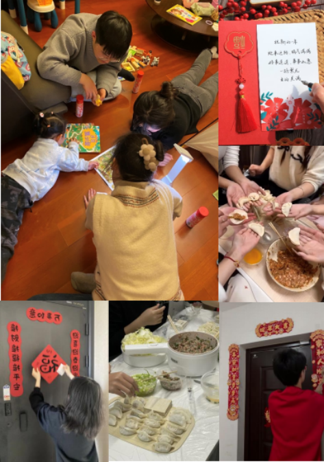 共享家的幸福:同学们纷纷化身家庭小帮手,主动承担起打扫家庭卫生的任务,积极参与备年货、包饺子、写(贴)春联等传统年俗活动,以实际行动减轻父母生活压力,共享温馨欢乐的家庭时光,并通过合影定格幸福瞬间,记录了家庭的温暖时刻。