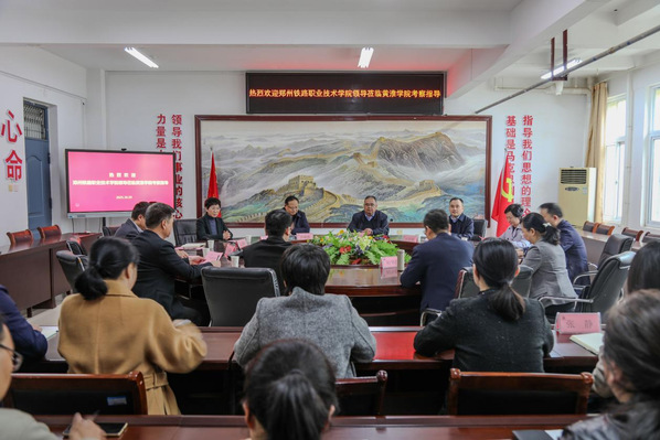 田道敏对黄淮学院的热情接待表示感谢,并介绍了学校的办学历程和发展特色。他表示,近年来,郑州铁院在深化综合改革、加快高质量发展方面取得一定成效,学校各项事业取得突破性进展,学校成功入选国家“双高计划”建设单位。黄淮学院作为特色鲜明的应用型大学,服务地方能力优势突出,希望双方在专业建设、人才培养等领域深度合作,共同开启协同发展、互利共赢的新局面。李福胜表示,两校在专业设置上既有重叠又有互补,合作空间广阔,希望双方建立教师互访互聘机制,协同开展关键技术领域科研攻关,实现优质教学资源有效流动,为区域职业教育协同发展注入新动力。