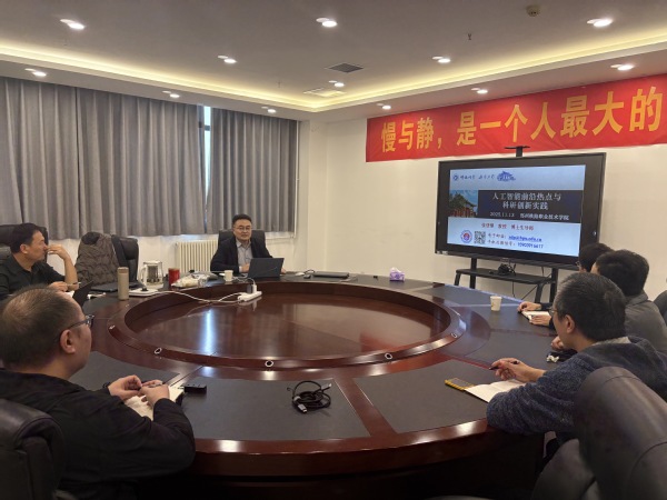 11月13日下午,一场题为“人工智能前沿热点与科研创新实践”的专题讲座在我校科创楼710会议室成功举办。本次讲座由我校党外知识分子联谊会与电子工程学院联合举办,邀请河南理工大学机械与动力工程学院副院长张登攀担任主讲。与会人员包括党外知识分子联谊会会员、电子工程学院教师及相关科研平台博士。